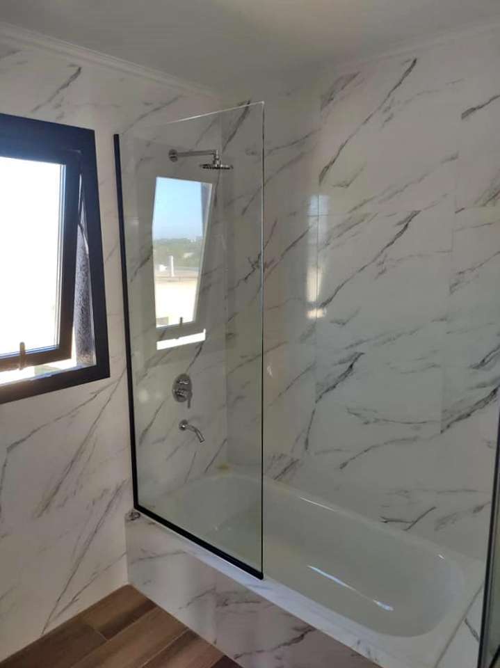 Cambiar la mampara de ducha o poner una mampara de bañera en lugar de cortinas transformará visiblemente tu baño: lo hará más grande y luminoso.